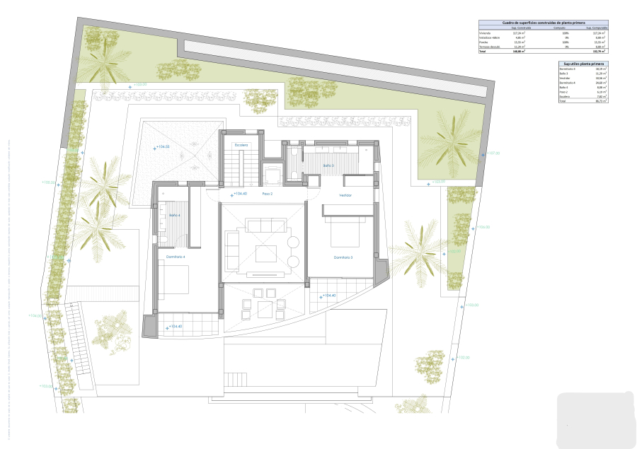 From the entrance to the garden through automatic doors, we access directly to the entrance of the garage on the semi-basement floor where we find outside a large parking area with capacity for several cars.