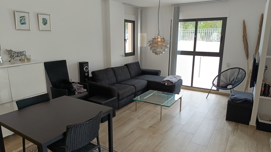 Discover this modern and elegant 2-bedroom, 2-bathroom ground floor flat, located in the exclusive Manzanera-Tosal area of Calpe. A privileged enclave offering stunning views of the mountains and the town, as well as an excellent location close to the sea, the harbour and the town centre. This property is in excellent condition and combines contemporary design and comfort, with an east and south orientation that guarantees natural light throughout the day. With 70 m² of usable space and 95 m² of floor space, it is ideal both as a permanent residence and as a holiday retreat.